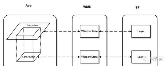 它继承自类View,因此它本质上是一个View。但与普通View不同的是,它有自己的Surface。有自己的Surface,在WMS中有对应的WindowState,在SurfaceFlinger中有Layer。我们知道,一般的Activity包含的多个View会组成View hierachy的树形结构,只有最顶层的DecorView,也就是根结点视图,才是对WMS可见的。这个DecorView在WMS中有一个对应的WindowState。相应地,在SF中对应的Layer。而SurfaceView自带一个Surface,这个Surface在WMS中有自己对应的WindowState,在SF中也会有自己的Layer。虽然在App端它仍在View hierachy中,但在Server端(WMS和SF)中,它与宿主窗口是分离的。这样的好处是对这个Surface的渲染可以放到单独线程去做,渲染时可以有自己的GL context。这对于一些游戏、视频等性能相关的应用非常有益,因为它不会影响主线程对事件的响应。但它也有缺点,因为这个Surface不在View hierachy中,它的显示也不受View的属性控制,所以不能进行平移,缩放等变换,也不能放在其它ViewGroup中,一些View中的特性也无法使用。