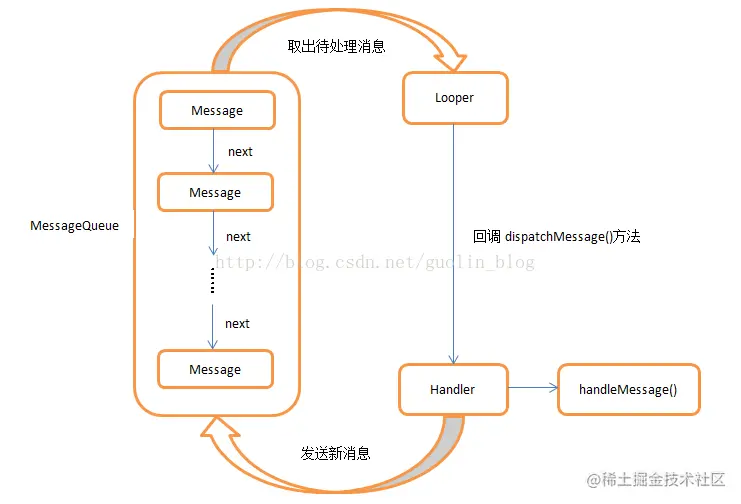 在MessageQueue.enqueueMessage() 和MessageQueue.next() 的时候都会用到同步锁synchronized保证线程安全 https://link.juejin.cn?target=https%3A%2F%2Fwww.wolai.com%2Friveryoung%2FpyMRri9RiZEhrYQ1whzZpT