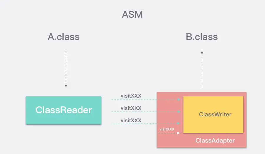 上面我们介绍了Transform,以及如何高效地在编译期间处理所有字节码,那么具体怎么处理字节码呢?接下来让我们一起看看JVM平台上的处理字节码神兵利器,ASM!