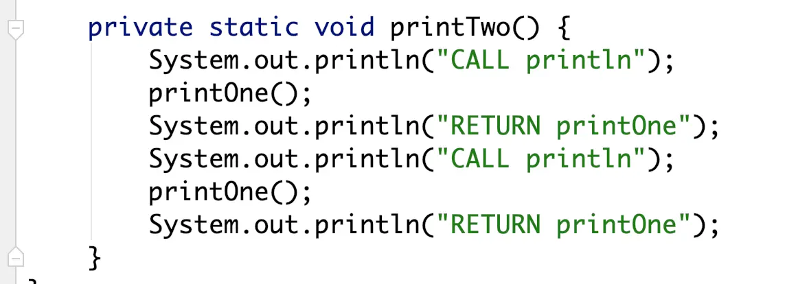 private static void printTwo() { printOne(); printOne();}被修改后的方法是这样