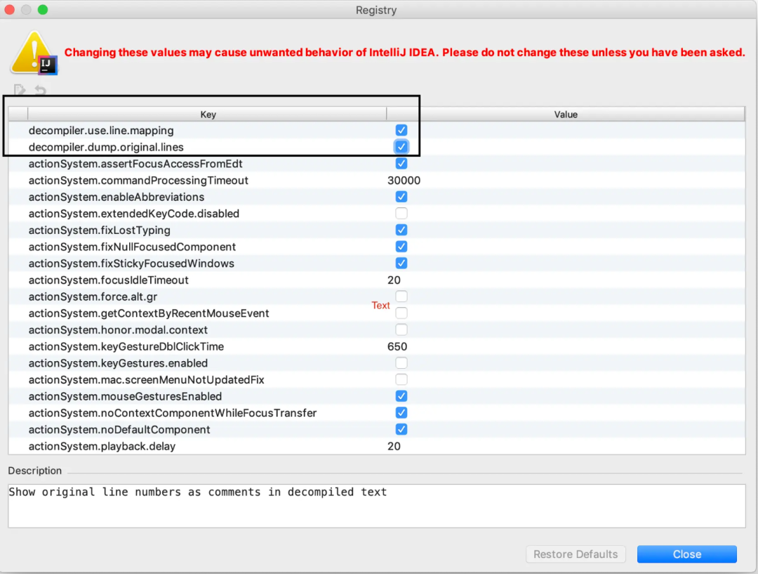 那么如何开启这个选项呢?Mac下cmd + shift + A输入Registry,勾选这两个选项