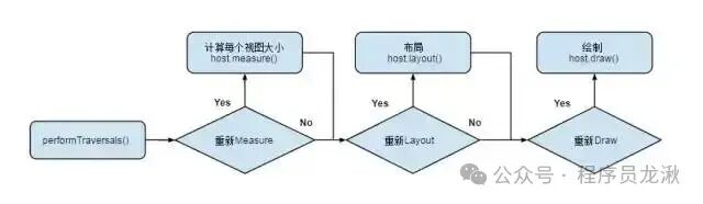 分析ViewRootImpl的源码,scheduleTraversales()内部会执行postCallBack触发mTraversalRunnable重新走一遍performTraversals(),第二次执行performTraversals()就会触发performDraw()。所以performTraversals()走了两次,那么肯定会走2次measure方法,但不一定走2次onMeasure(),读过View measure方法源码的都应知道measure方法做了2级测量优化: