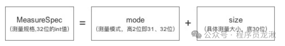 简单介绍下MeasureSpec MeasureSpec由两部分组成,一部分是测量模式,另一部分是测量的尺寸大小。