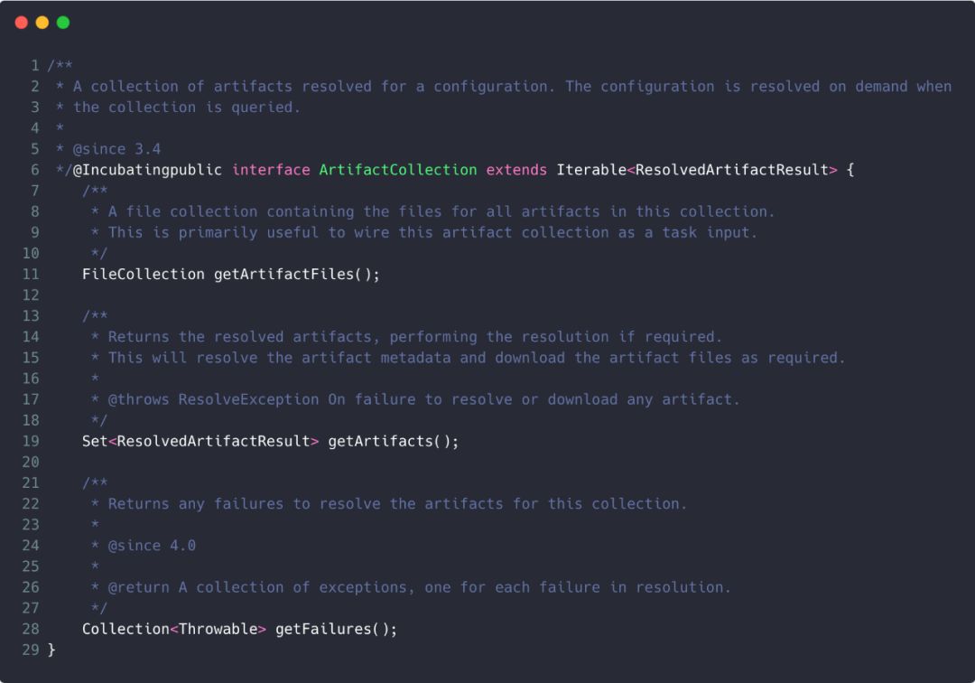 之所以有FileCollection是因为基本上所有的AndroidTask的输出都是文件。ArtifactCollection的定义如下: