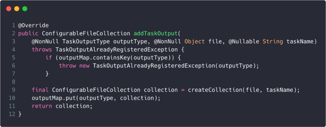 而addTaskOutput()方法如下: