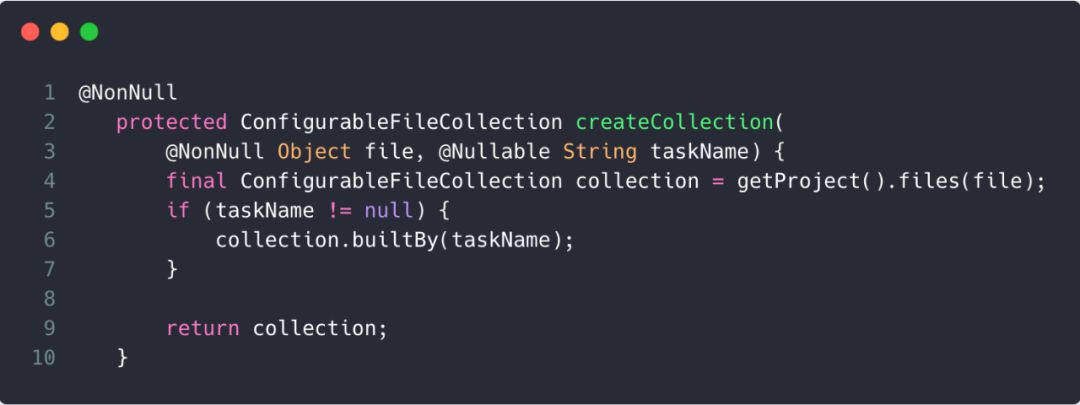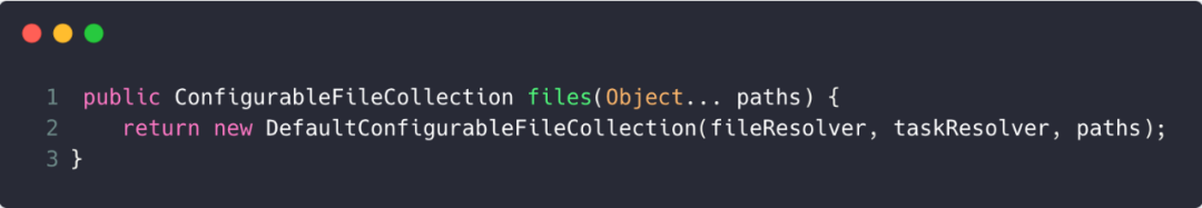 显然,这里返回的是DefaultConfigurableFileCollection对象,这里可以先简单地把DefaultConfigurableFileCollection当作文件和编译依赖的包装类。
