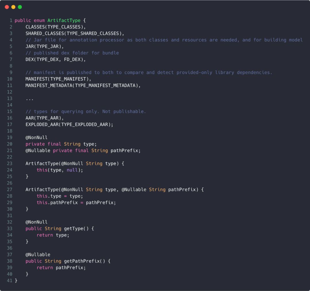 - 需要对外发布的artifacts,都有一个OutputType和与之对应的ArtifactType。