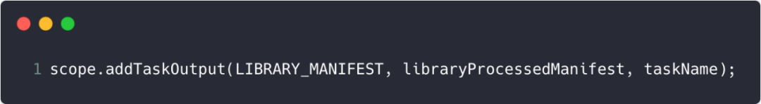 前面我们说过,以输出类型为LIBRARY_MANIFEST的产物发布为例,其中LIBRARY_MANIFEST的调用在TaskManager中,如下:
