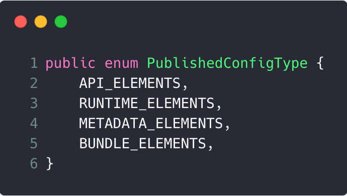 publishedConfigTypes为发布的configuration的类型集合,因为有些产物可发布到多个configuration中。注意PublishedConfigType定义如下: