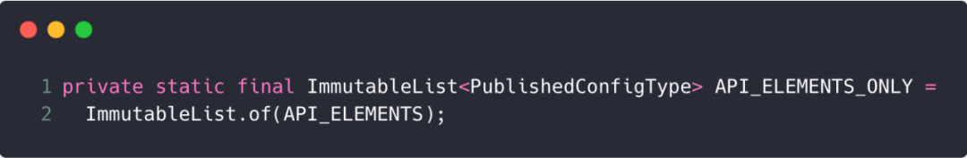 - 输出类型为APK_MAPPING的task,其产物类型为ArtifactType.APK_MAPPING,可输出的configuration类型(集合)为API_ELEMENTS_ONLY,而API_ELEMENTS_ONLY的定义如下: