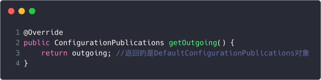 结合outgoing初始化的代码,可知outgoing是DefaultConfigurationPublications对象。
