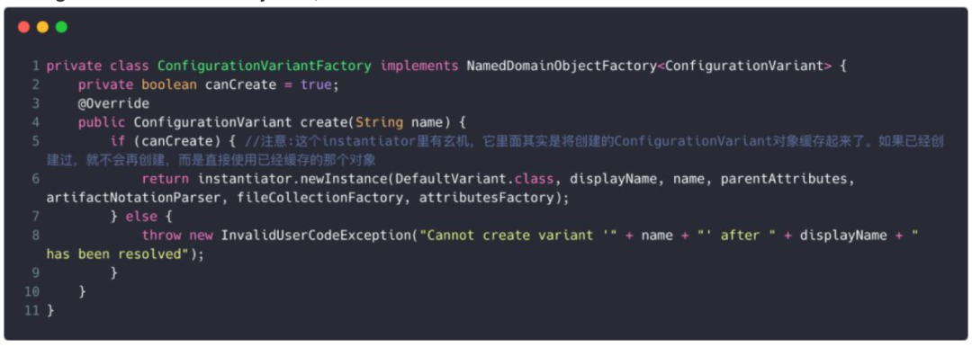 可见,这里是先创建一个ConfigurationVariantFactory对象,然后传入此对象以创建FactoryNamedDomainObjectContainer对象。