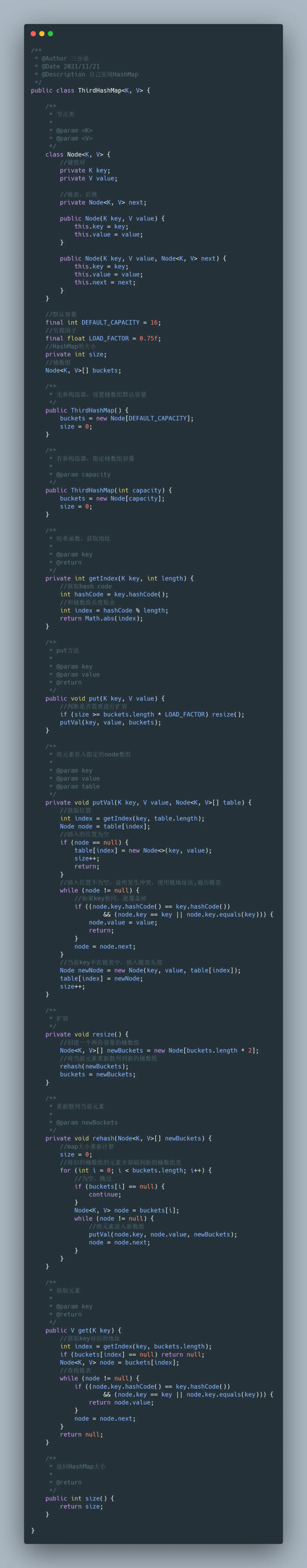 这道题快手常考。 不要慌,红黑树版咱们多半是写不出来,但是数组+链表版还是问题不大的,详细可见: 手写 HashMap,快手面试官直呼内行!。 整体的设计: