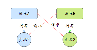 - 持有并等待条件:一个线程至少已经持有至少一个资源,且正在等待获取额外的资源,这些额外的资源被其他线程占有。