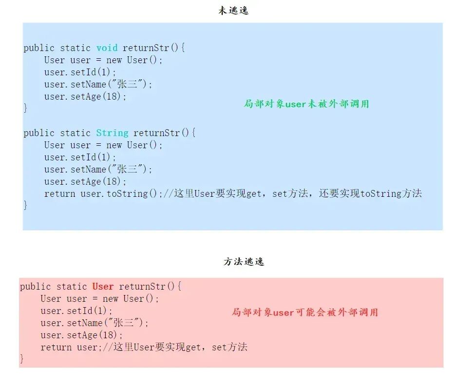通俗点讲,当一个对象被new出来之后,它可能被外部所调用,如果是作为参数传递到外部了,就称之为方法逃逸。
