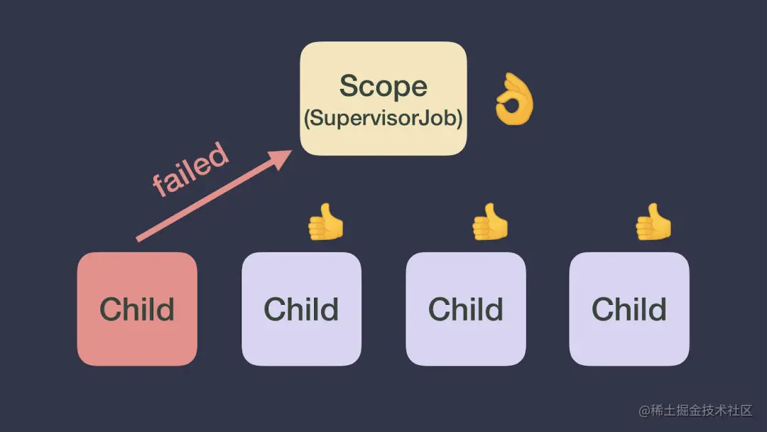 为什么? 我不是已经使用了 SupervisorJob() 吗?我们用一张图来看一下:
